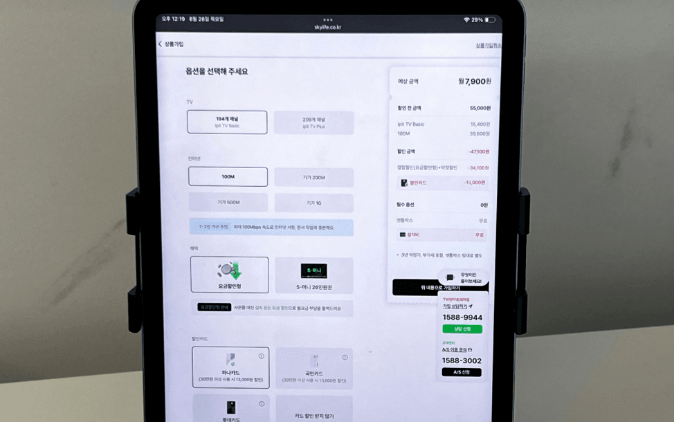 간편하게 홈페이지를 통해서 셀프 가입할 수 있으니 편하고 상담원이나 상담전화를 통하지 않으니 기다리는 지루함이 없답니다. 스카이라이프 홈페이지나 앱에서 간단하게 셀프 가입할 수 있고 가입 후 고객센터 연락으로 가입 마무리를 하시면 됩니다.[출처:네이버블로그'바삭쿠라']